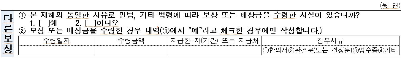 원 가 지급 청구일까지 지급받지 못했으나 , 향후 퇴직연금사업자로부터 지급받을 퇴직연금이 있습니까 ? [ ] 예 [ ]아니오 나 지급 청구일까지 지급받지 못했으나, 향후 외국인 근로자의 출국만기보험ㆍ신탁 및 보증보험으로 지급받을 보험금이 있습니까? [ ]예 [ ] 아니오 ⑤ 청구일 현재까지 지급받지 못한 임금등의 금액 가 최종 3개월분(재직자의 경우 소송등 또는 진정등 제기일 기준 마지막 3개월분)의 임금ㆍ휴업수당ㆍ출산전후휴가기간 중 급여: 원 나 최종 3년간의 퇴직급여등 (퇴직자인 경우): 원 ⑥지급받아야 할 대지급금 원 ⑦대지급금 지급(일부지급 제외) 결정 시 희망하는 통지 방법 [ ]문자메시지 [ ]우편