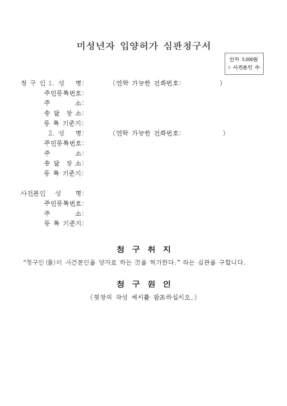 미성년자 입양허가 심판청구서_5