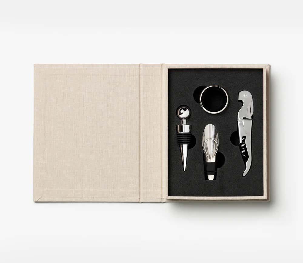 Exklusivt vinset i snyggt rostfritt stål. Vinöppnare med smart och exakt rotationsteknik avlägsnar lätt både naturliga och syntetiska korkar. Setet inkluderar även termometer, folieskärare och en dekorativ stoppare som skyddar ditt vin om du önskar spara det. Kampanjpris 439:-