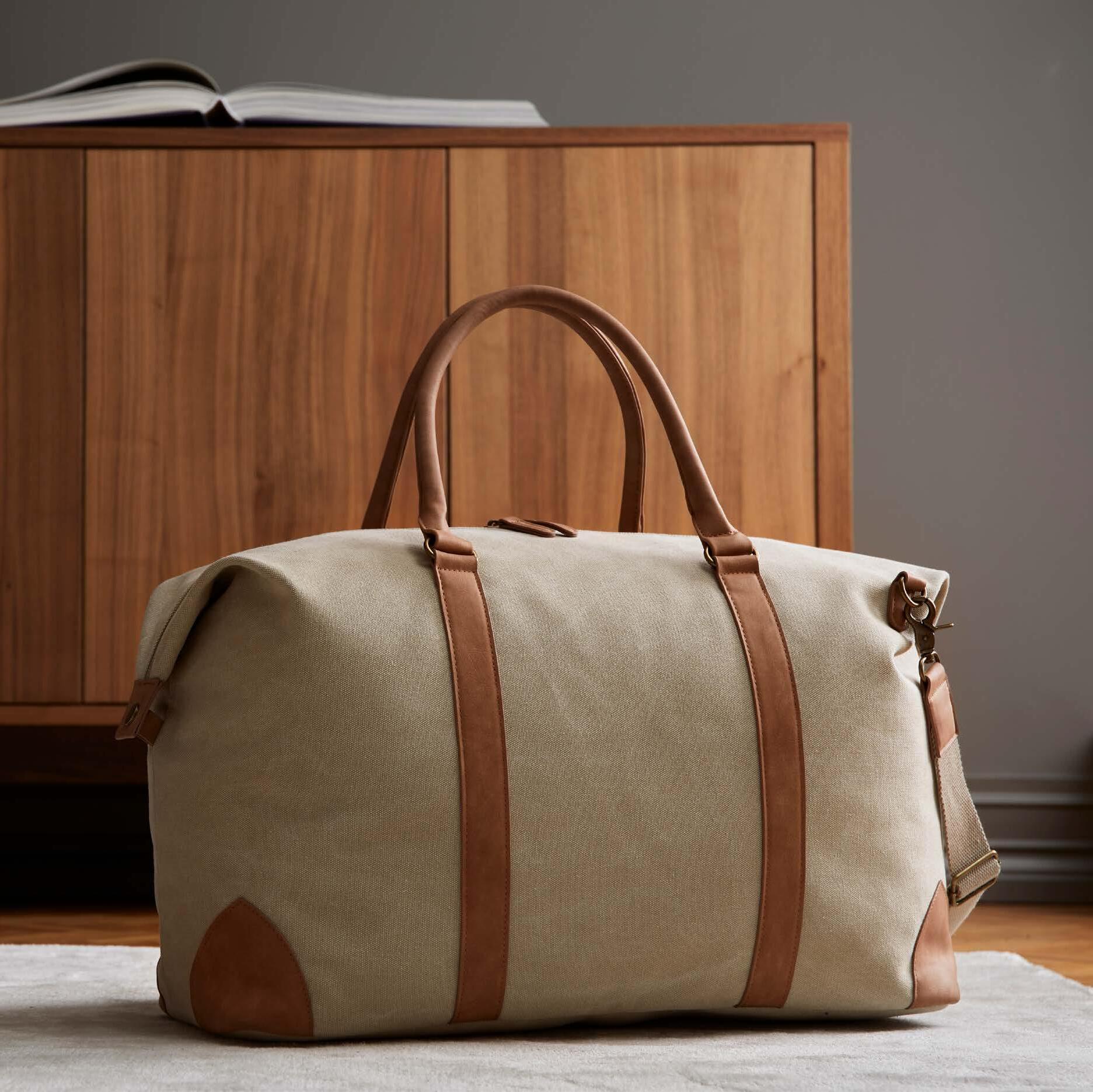 Den här snygga weekendbagen i återvunnen canvas kommer du att ha nytta av i många år framöver. Den eleganta och mångsidiga designen rymmer allt du behöver och är perfekt för en weekendresa eller en kortare semester. Den justerbara och avtagbara axelremmen ger extra komfort och flexibilitet, en perfekt väska oavsett dina planer eller destination.
