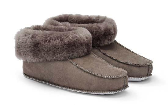 Exklusiva tofflor tillverkade av finaste fårskinn. Tofflor erbjuder härlig komfort och värme, perfekta för kalla dagar och mysiga kvällar hemma. Levereras i en elegant skopåse av bomull.