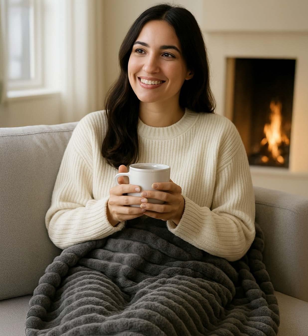 En pläd som bjuder in till vila. Den täta ytan i kaninpälsimitation känns len mot huden och ger tyngd som omsluter dig med värme. En mjuk detalj som tillför en lyxig känsla till sängen, soffan eller fåtöljen - perfekt för kyliga kvällar och lugna stunder. Finns i sand och grå.