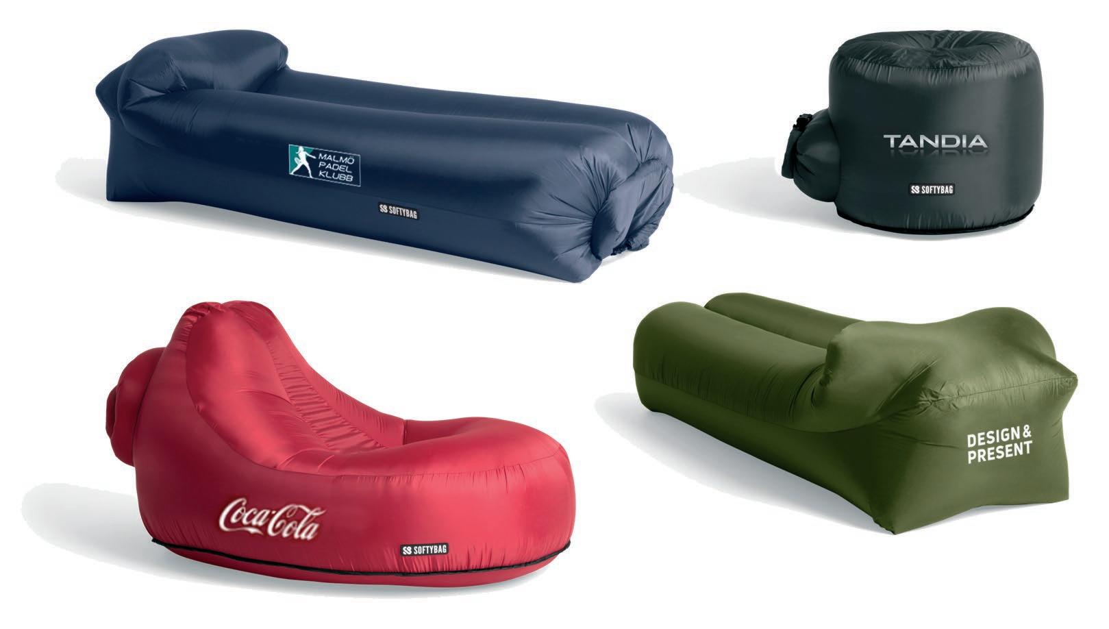 Årets populäraste gåva! Stilren, enkel och portabel - och väldigt användbar. Oavsett var du befinner dig är softybag den perfekta följeslagaren när du vill ha avkoppling utan ansträngning. Nedpackad tar den inte mer plats än en necessär, uppfylld erbjuder den sittplats för upp till tre personer eller en bekväm bädd för dig själv. Fyll den på några sekunder med ett par drag genom luften Går att logomärka. Finns i Chili red, Midnight black, Navy blue och Olive green. Vikt 0,7 kg.