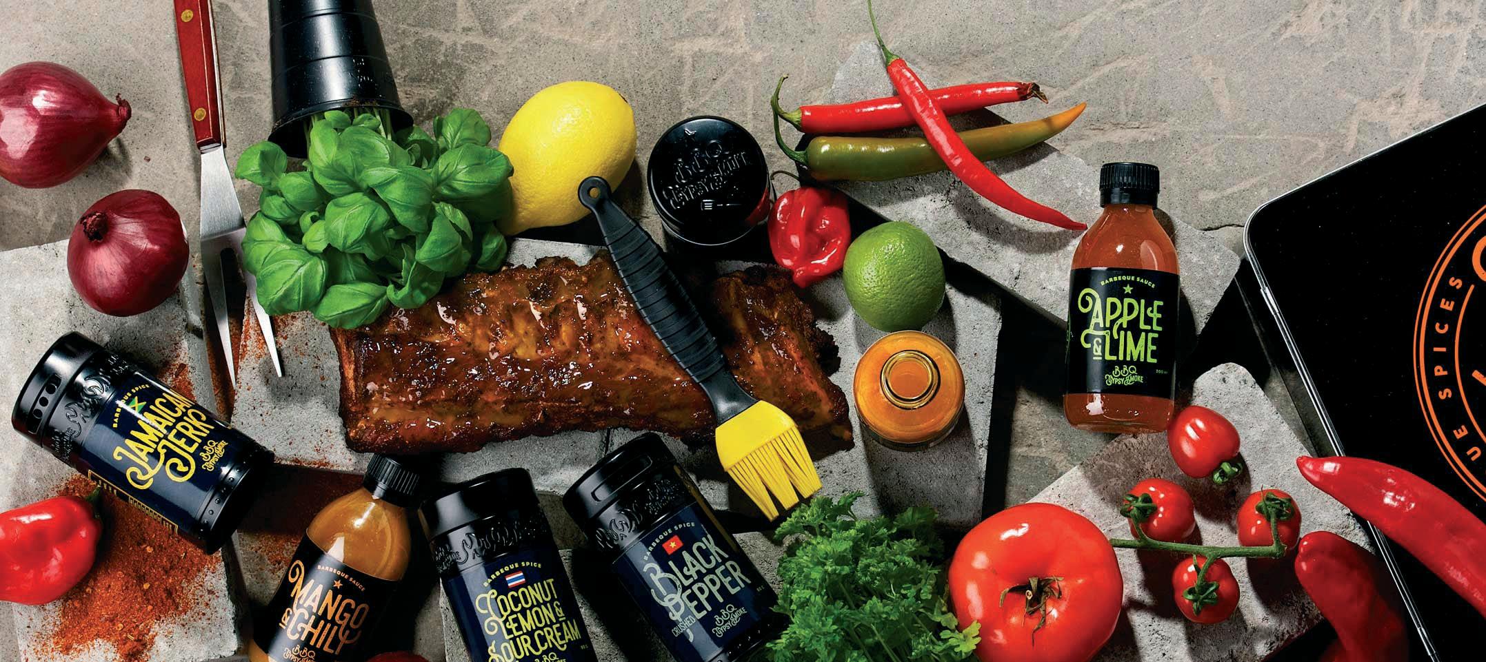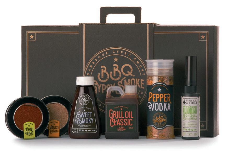 En snygg presentkartong med pensel, 2 burkar grillkryddor – Black pepper crushed, Seasalt Sicily samt 2 flaskor grillsås – Apple & lime och Mango & chili. Kryddorna kommer i unikt designade burkar - oerhört användarvänliga med 2 öppningar på sidan av burken, ena sidan med stor öppning och andra med ströare.