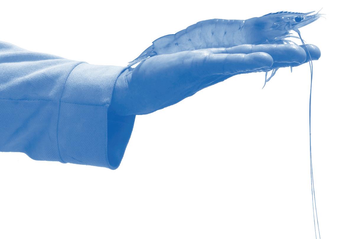 cen en condiciones que garantizan que no haya posibilidad de contaminación por patógenos. Se les alimenta con una variedad de dietas que incluyen poliquetos, calamares, mejillones, krill y/o biomasa de Artemia, además de dietas formuladas estandarizadas que garantizan que los camarones dispongan de la gama de nutrientes necesarios para producir huevos y nauplios de alta calidad. Si estos alimentos frescos no se preparan de manera adecuada, pueden contaminar fácilmente a los reproductores y desencadenar una cascada de acontecimientos que, en última instancia, repercuten de forma negativa no solo en la fecundidad, sino también en la salud general de los camarones de los estanques de producción.