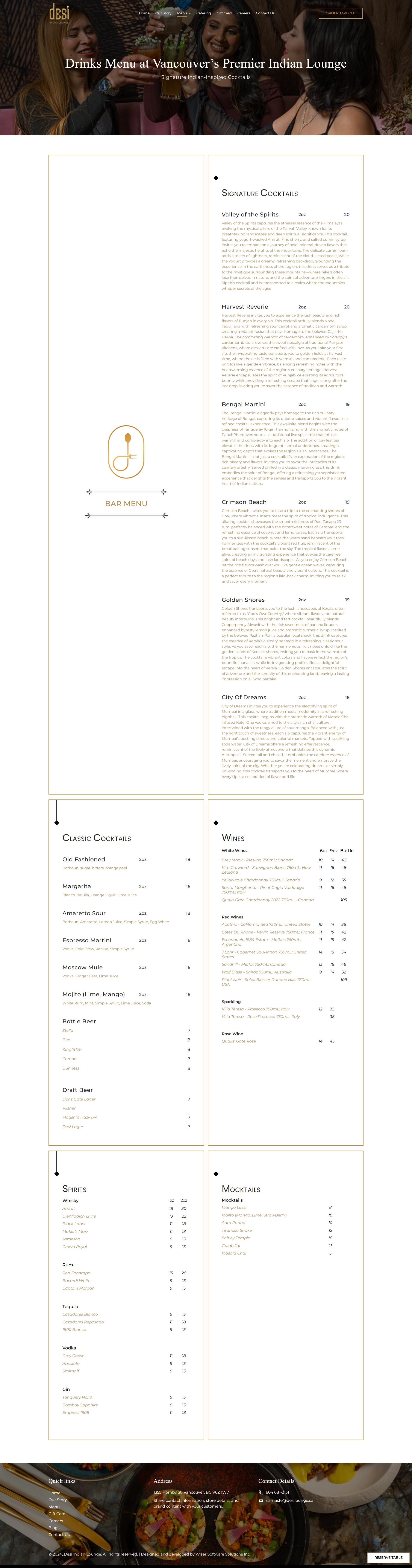 Discover Vancouver’s top Indian lounge and cocktail bar serving handcrafted Indian-inspired drinks, premium whiskies, wines, craft beers, and mocktails. From Bengal Martini to masala chai vodka cocktails, enjoy bold flavors and a luxury bar experience in Vancouver.