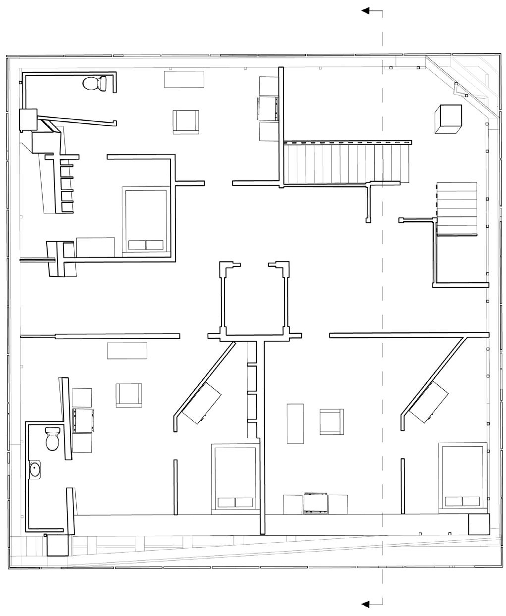 Conceptual Study and Exercise of Precedent Floor Plans. Final Result was to “cut up” different parts of different plans and assemble a “new” floor plan and create a potential design strategy or method of thinking. I imagined each domestic space as offset creating a corridor and began my design based on this.