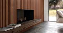 Um quarto, assinado pela arquiteta Viviane Loyola, em que o painel de madeira reúne os 3 F’s. A fluidez está no design com aberturas; funcionalidade por setorizar os ambientes; e versatilidade na própria solução, que pode ser implementada em qualquer ambiente - seja para dar um toque na decoração ou para delimitar espaços.