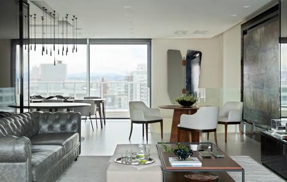 nobres, junto com projeto luminotécnico, traduzem uma proposta de conforto e amplitude do ambiente. As linhas fluídas e cantos orgânicos são características marcantes no design de móveis e estofados criando uma sensação de que o mobiliário está suspenso, tendência mundial da marca.