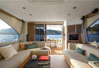 O lounge de proa traz mais uma inovação da marca, um espaço que pode ser utilizado tanto para relaxar ou para aproveitar a navegação em dias ensolarados, quanto para reunir os amigos já que pode se transformar em uma grande área externa com sofá.Um décor que revela o conceito de uma embarcação espaçosa e requintada, que prioriza o extraordinário.
