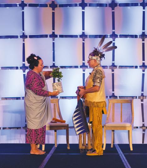 In September 2023, Signature Travel Network joined forces with ITAC and DC to host its 2023 Travelers Meeting. During this year’s meeting in Wailea, Maui, a symbolic handover occurred from native Hawaiian Kalei 'Uweko'olanito, cultural programming manager of Grand Wailea, a Waldorf Astoria Resort, to Mohawk Elder Ka'nahsohon Kevin Deer of Canada at the closing ceremony.