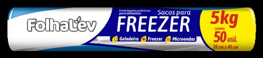 Sacos para freezer Folhalev podem ser usado no micro-ondas para aquecer ou descongelar com segurança. Disponíveis nos formatos de 2 kg, 3 kg e 5 kg, em pacotes com 50 ou 100 unidades.