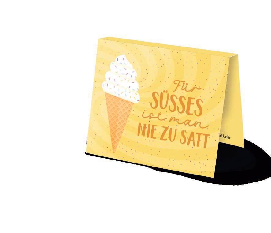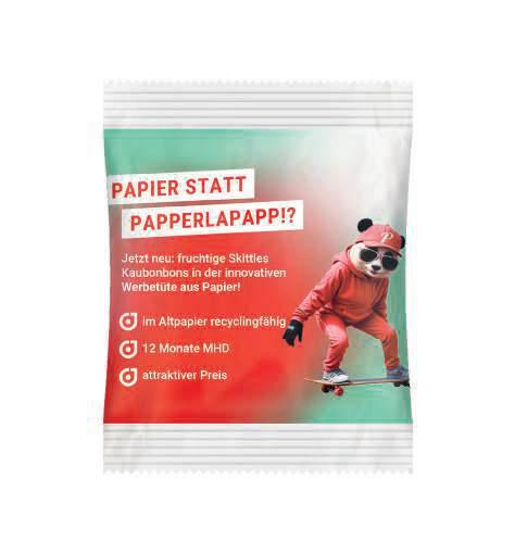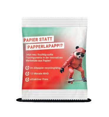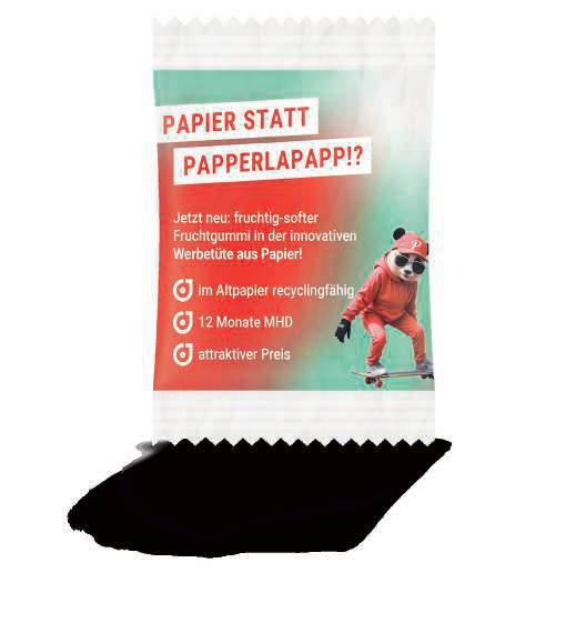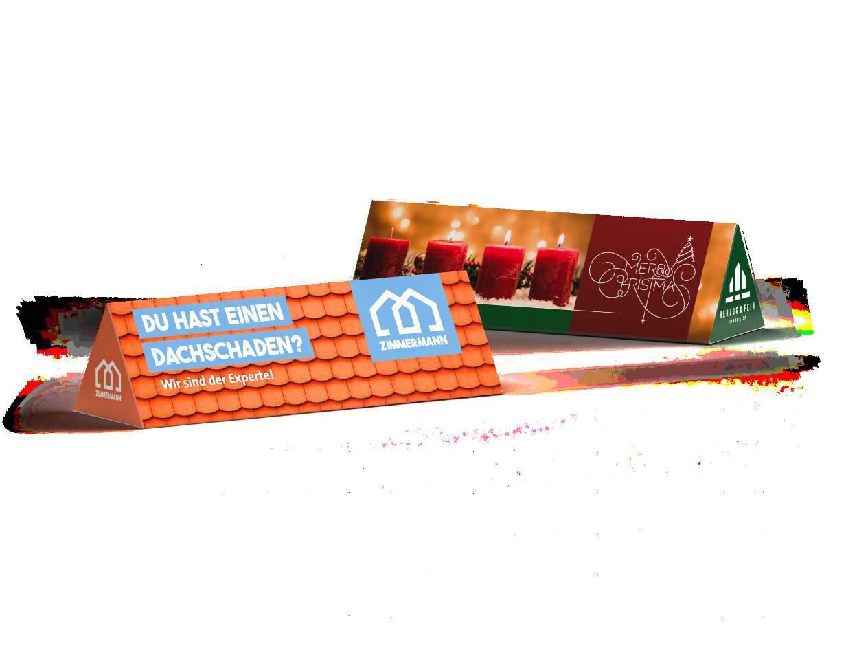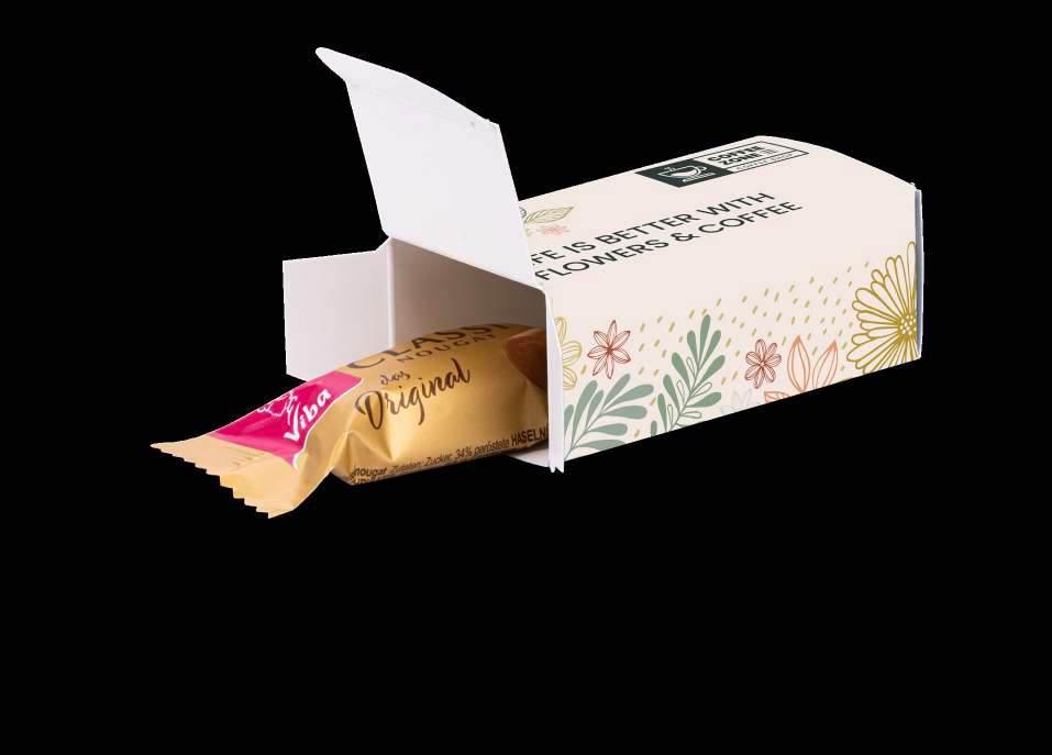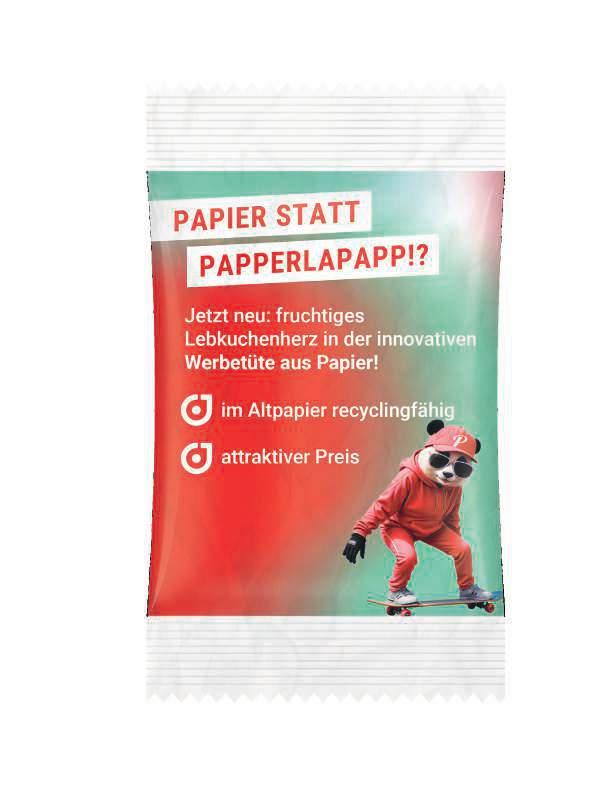 All three chocolate products are packaged in 100% recyclable glassine paper, almost unique on the advertising treats market. Glassine paper is semi-transparent. The material is grease- and splash-proof making it ideal to protect mouthwatering confectionery. The paper is 100% recyclable and can be disposed of with waste . A clean solution.
