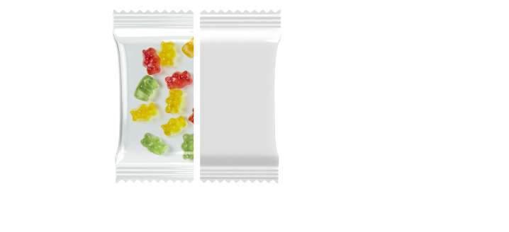 Sweets: In full-surface printing, a white edge (each of 1 mm) remains on the side at the end of the wrapper ends. Due to the block ends meeting, a fine white stripe runs across the width of the paper.