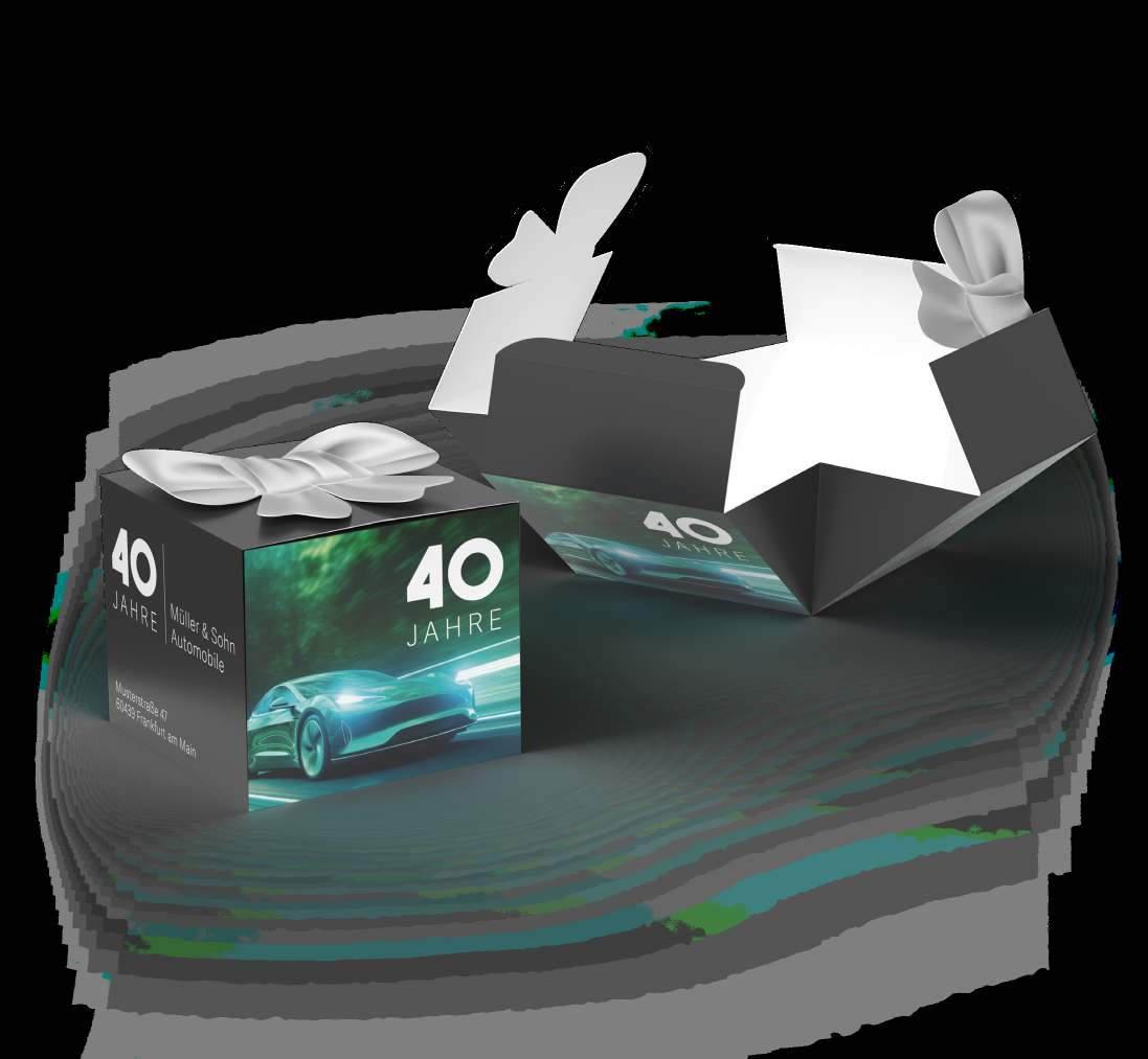 Boxes: Applying a white background to the motif, as is usual with silver boxes in pad printing, is not possible. In these cases, transparent inks are not opaque and therefore often do not achieve the desired colour tone (can look dirty). Please also note that negatively recessed elements will appear in box colours in print. On the other hand, this can result in a very elegant effect thanks to the shining through e.g. of a shiny box.