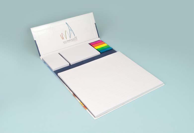 The product is equally useful in daily office work and during training events and conferences. Notes sets can be offered with glued edges, with a wire-o binding or can attached to the cover with a clip, which makes it possible to add and take out the sheets with notes at any time.