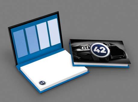 The most prestigious group of products is the Mindnotes® notebooks, advertising products available in hundreds of versions with tailor-made features to suit the needs of every brand. The offer includes a vast choice of different coverings, colours, patterns and textures. The notebooks are available in of and hard covers, embossed or custom printed, with various finishing types.