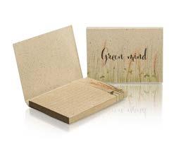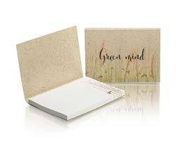 Ecological paper containing up to 30% grass fibers is available in two qualities that enable the production of hard and soft covers. Grass paper is also available as selfadhesive eco-friendly paper grade. Potential clients will appreciate your environmentally conscious stance and view it as a credit to your brand.