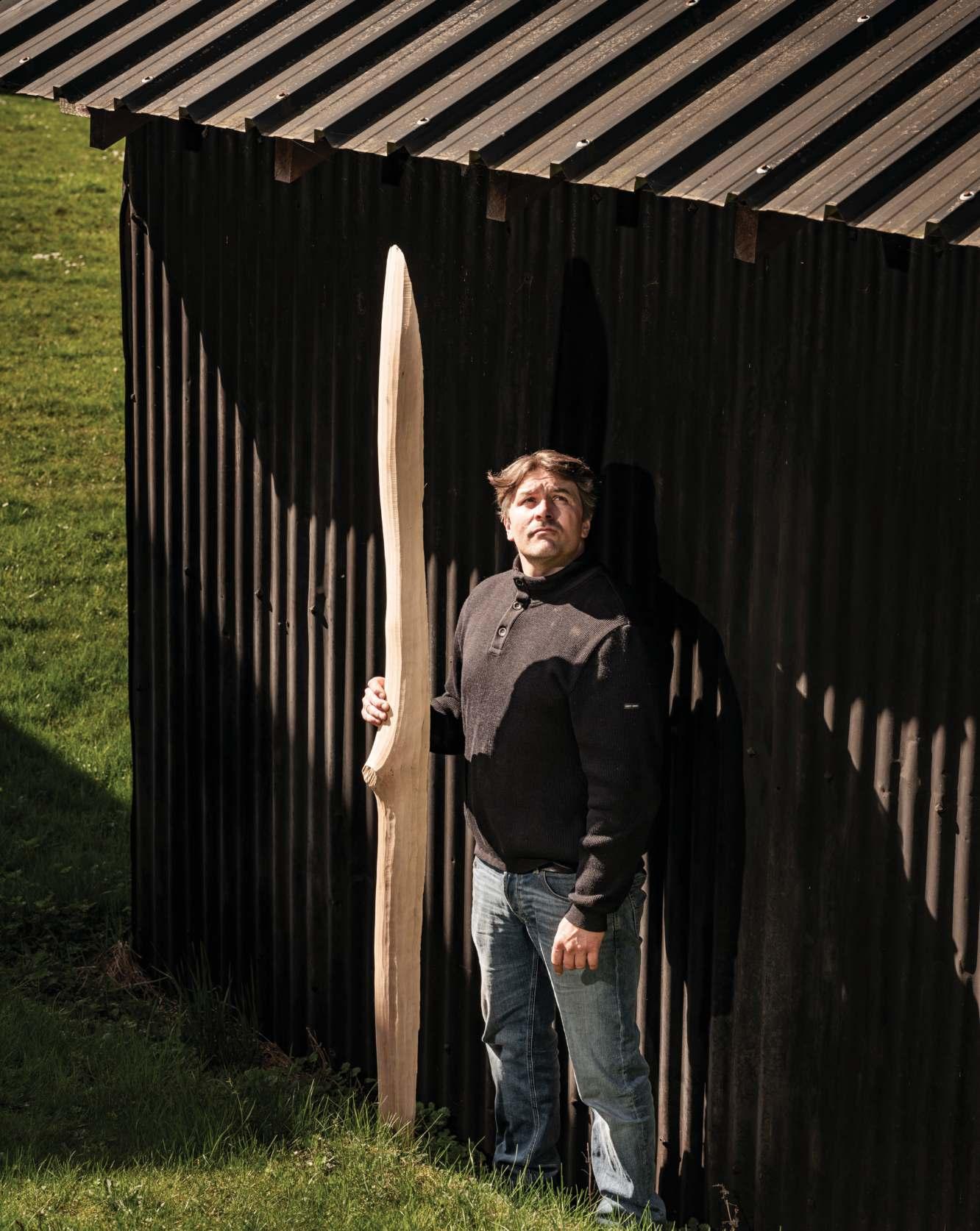 Kaspar Hamacher est un «homme de bois» au sens propre. Ce fils de garde forestier a trouvé dans la nature une seconde maison et, aujourd’hui, il vit et travaille à Raeren, une commune germanophone de la province de Liège. Les souches et troncs qu’il utilise pour ses meubles monolithiques proviennent de la forêt environnante. «Ces morceaux d’arbres peuvent rester longtemps dans mon atelier, le temps que mon idée prenne forme. Je ne commence que quand je suis totalement certain de ce que je vais faire, car une fois qu’on a coupé un morceau, il n’y a pas de retour en arrière», lance Hamacher. «Un arbre est déjà naturellement si puissant et beau. Comment puis-je l’améliorer? Ou comment puis-je y ajouter une idée? Cela reste une difficulté.»