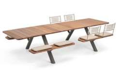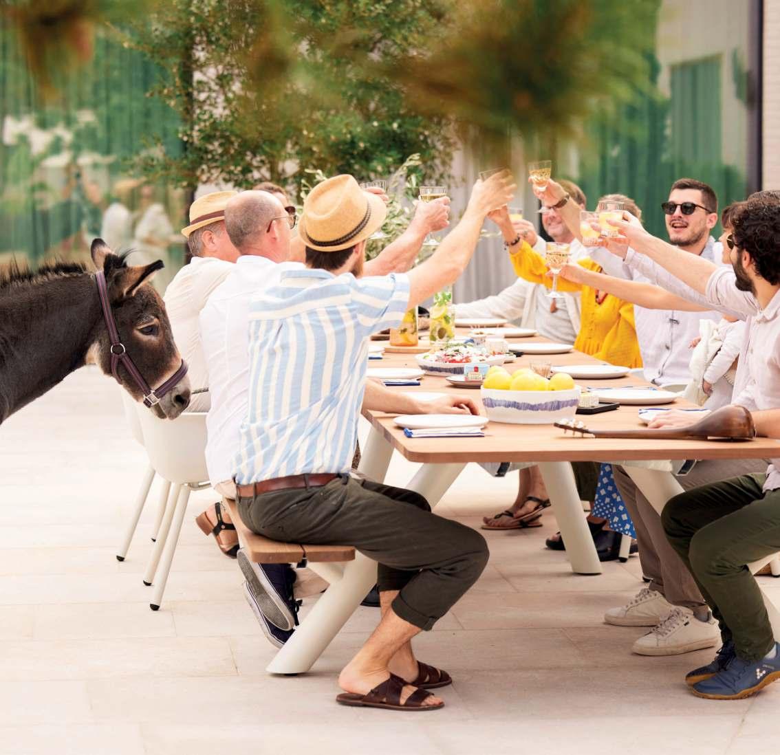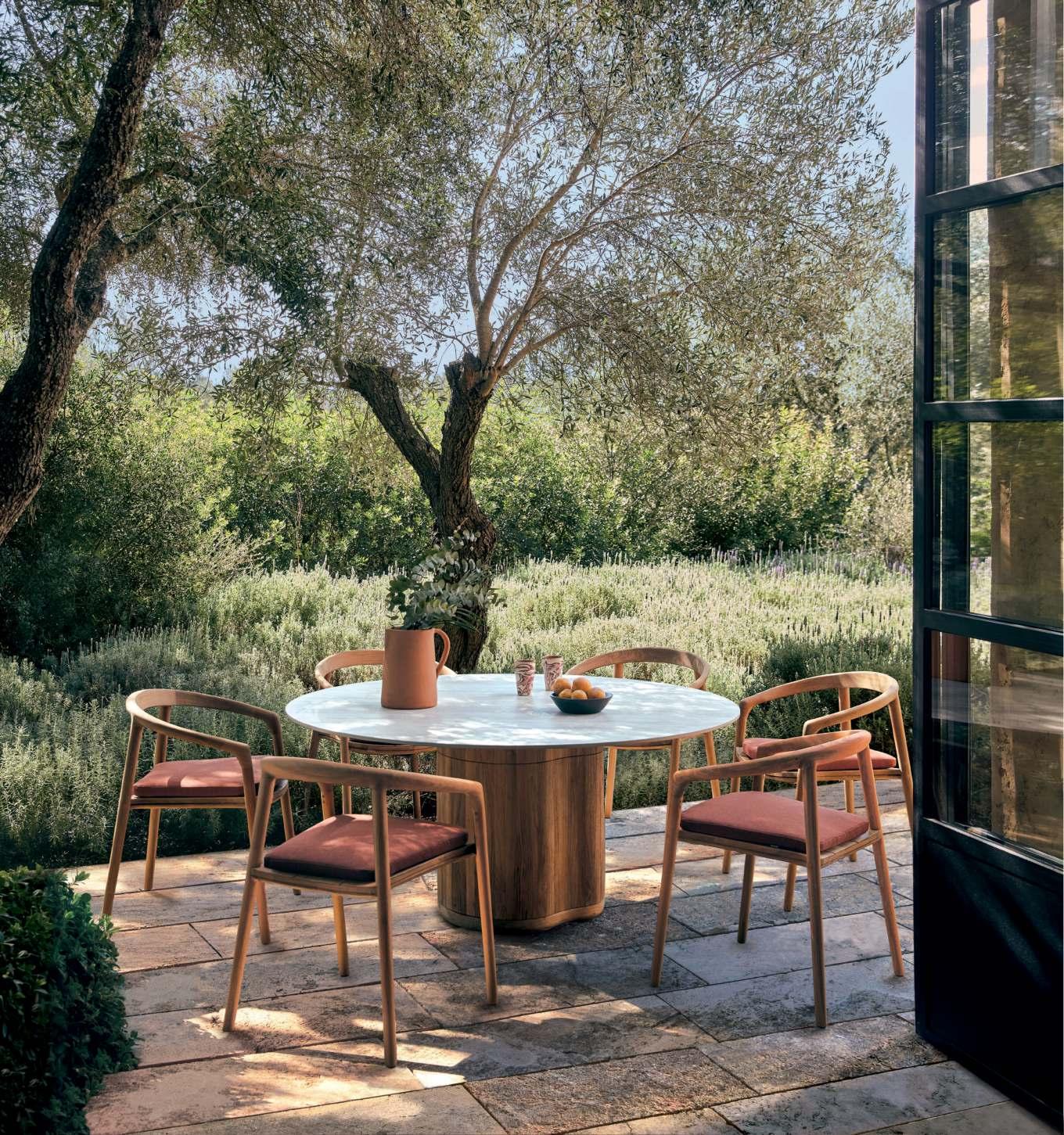 À DROITE LA TABLE «LUNUGANGA» ET LES CHAISES «BENTOTA».