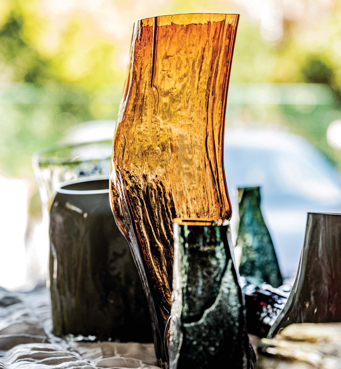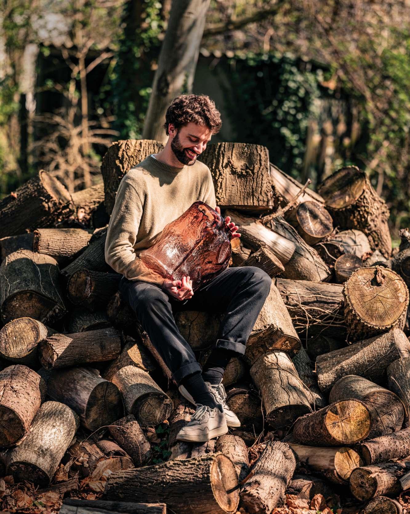 Les vases de Nicolas Erauw ressemblent à des troncs d’arbres transformés en verre et,en réalité,c’est ce qu’ils sont:il souffle du verre dans des troncs d’arbres.«L’idée m’est venue il y a quelques années,quand j’ai trouvé un peuplier tombé dans le jardin forestier de ma grand-mère.Le tronc avait formé une cavité naturelle et je l’ai trouvé si beau que j’ai voulu en faire un moulage. J’ai découpé le tronc en morceaux pour pouvoir utiliser la cavité comme moule»,confie le designer.