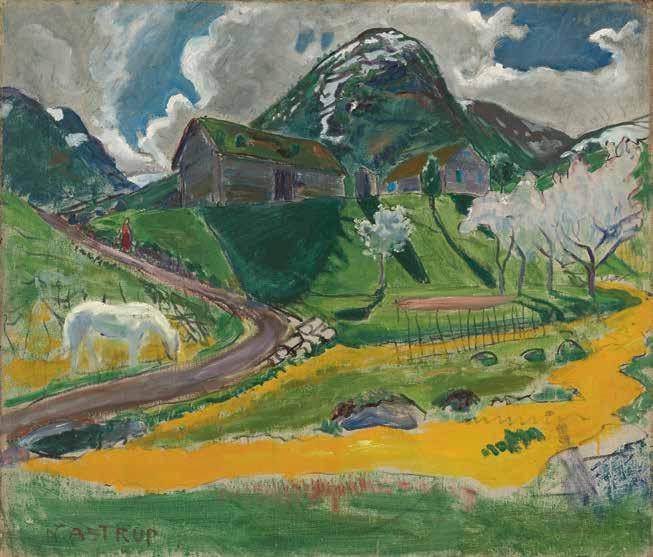 Nikolai Astrup voks opp på Jølster i Sunnfjord. Mange av bilda hans er stemningar som er knytte til heimtraktene og til skiftande årstider, vêr og tider på døgnet. Han jobba med både grafikk, teikning og måleri. Komposisjonen med den kvite hesten har fleire kjenneteikn ved Astrup: dei friske fargane, det bratte landskapet og ein romantisk undertone. I perioden då bildet vart laga, var han som fleire kunstnarar oppteken av å koma tilbake til naturen i både liv og arbeid etter studieopphald i Paris.