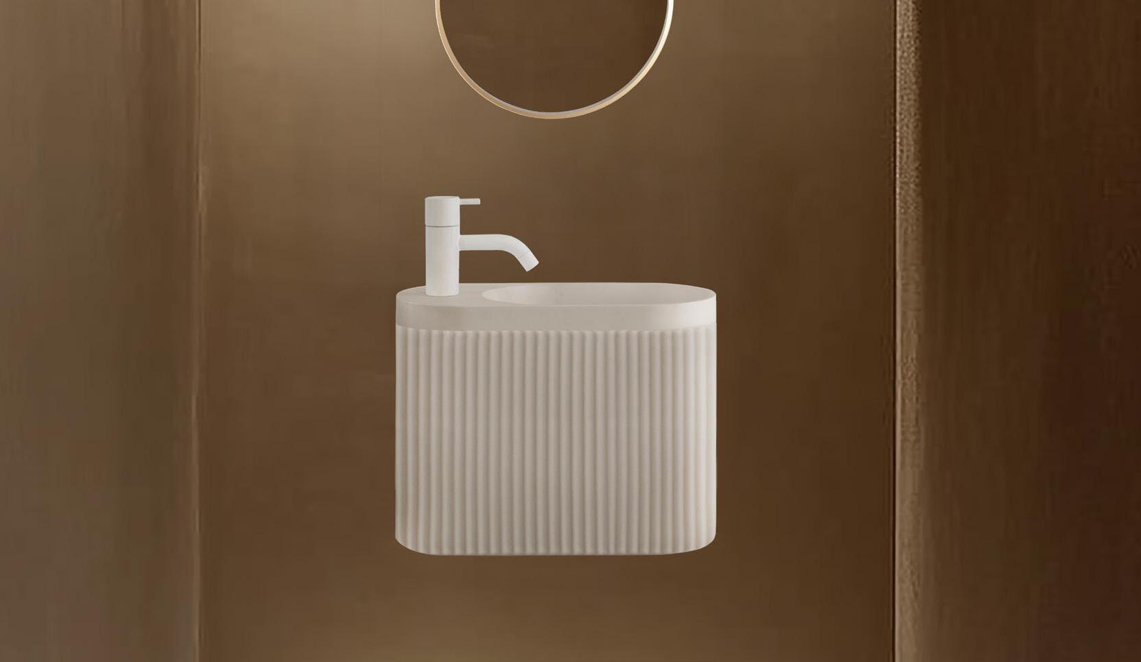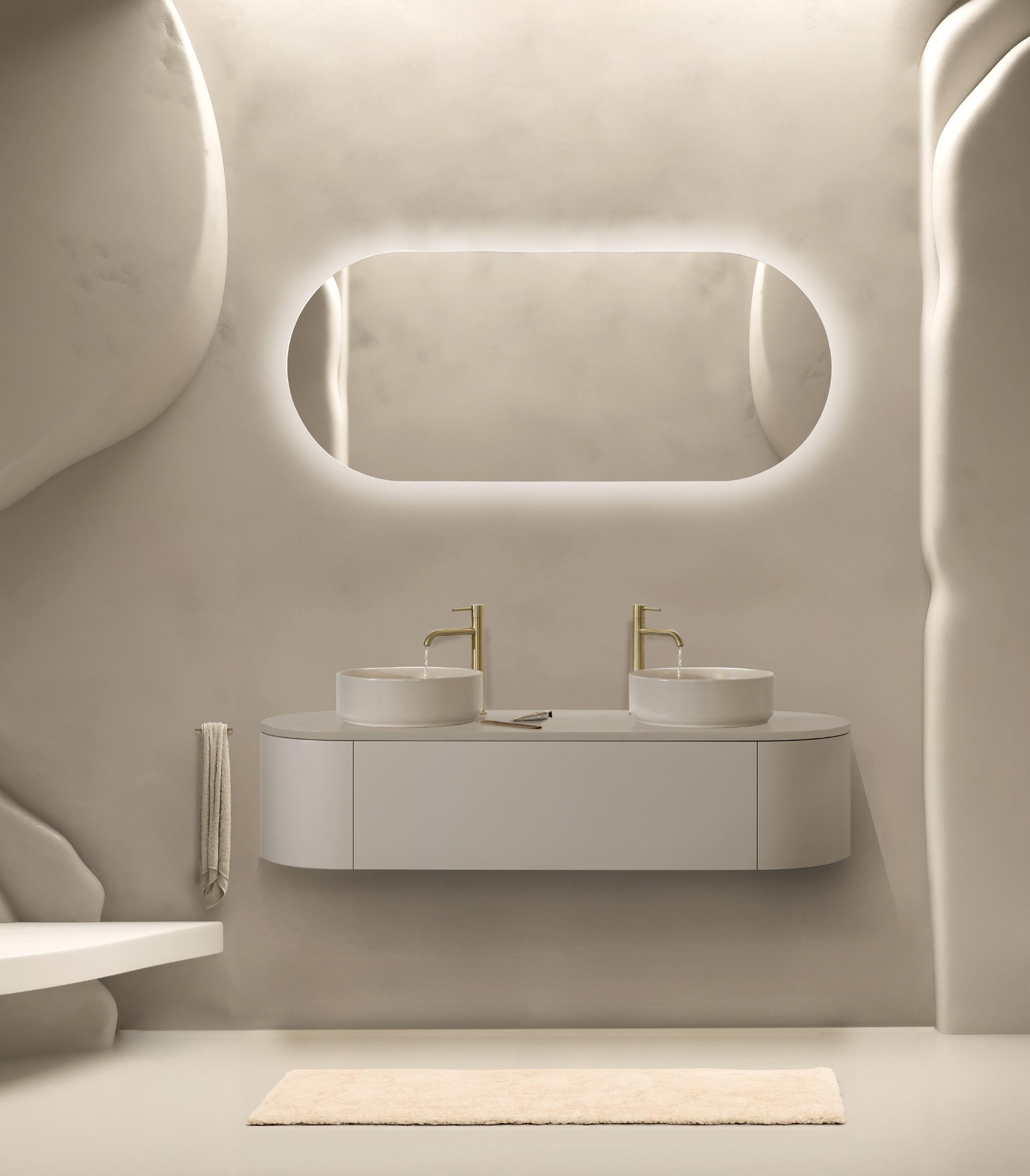 Une table-vasque en suspension libre est très tendance.