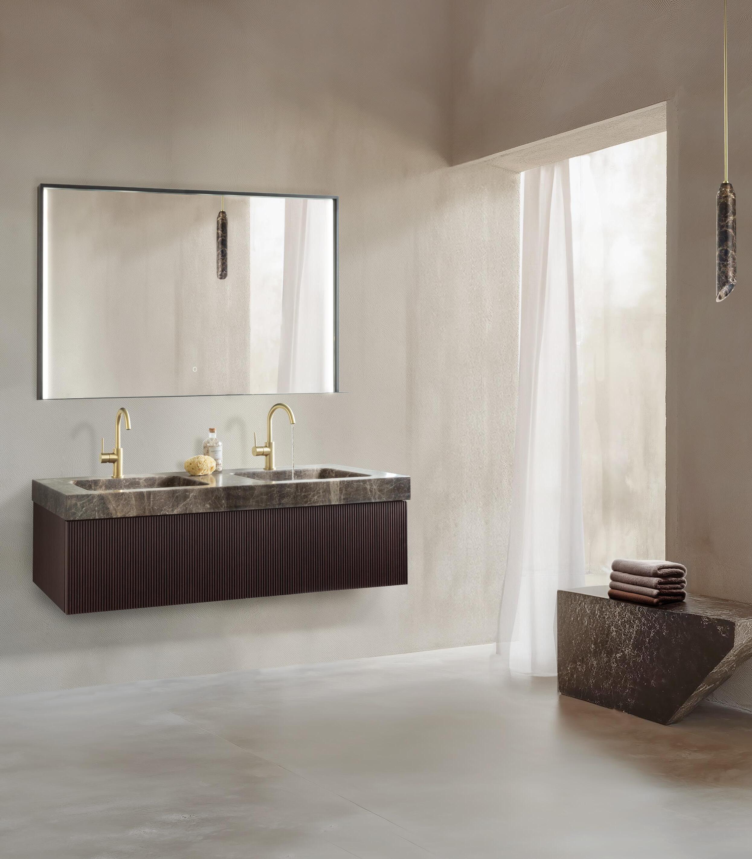 This is possible for a lot of our mirrors and from now on also applicable on our mirror cabinets, even with integrated lighting. How luxurious!