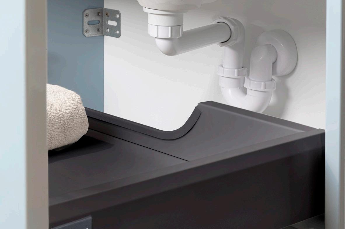 Need space in your base cabinet? Detremmerie always delivers the base cabinets with compact siphons. Because there is no need for a recess, you gain more storage space in your drawer. Very convenient!