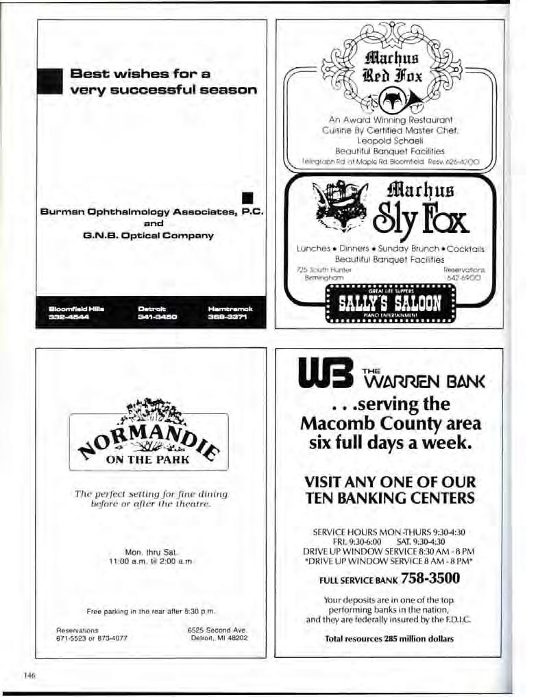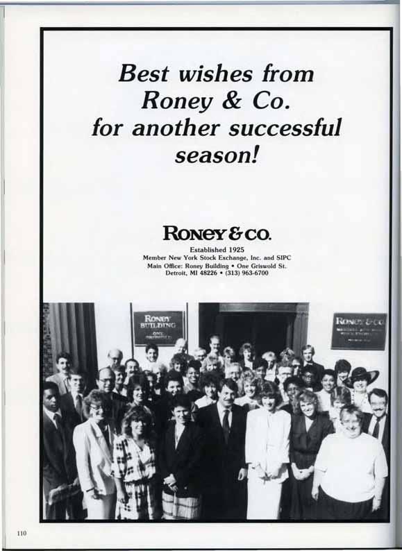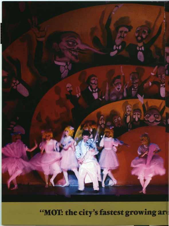 Michigan Opera Theatre today is providing our citywithtwofull opera seasons, inthefallatFisher Theatre and a spring grand opera season atthe Masonic Temple.Wenowrankasthe ninth largest company inthe nation inthesize of our operations and asthe seventhlargestinterms of mainstage audience attendance. Thesefiguresdonottakeinto account themany thousands that are annually enriched through our fifteenweek MOT-In-Residence touring program, orthemore than 300 performances presented in schoolsand communities byMOT's Overture to Opera troupe.