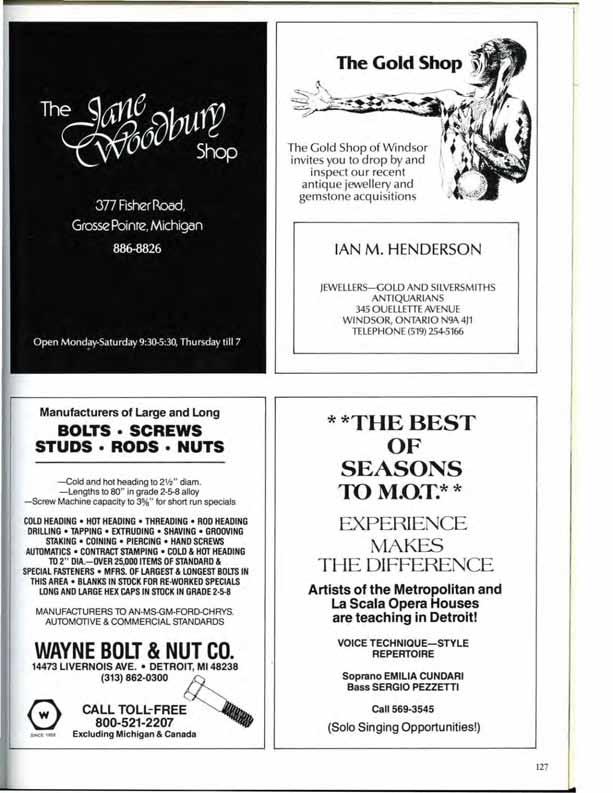 What many considered tobean "impossible dream" forthe creation of a professional opera company in Detroit, Overture To Opera'searlyactivitiesprovedtobethe beginning of the "quest:' Many patrons inthe community shared inthisvision and without their dedication and support, today's realitywouldnothave occurred