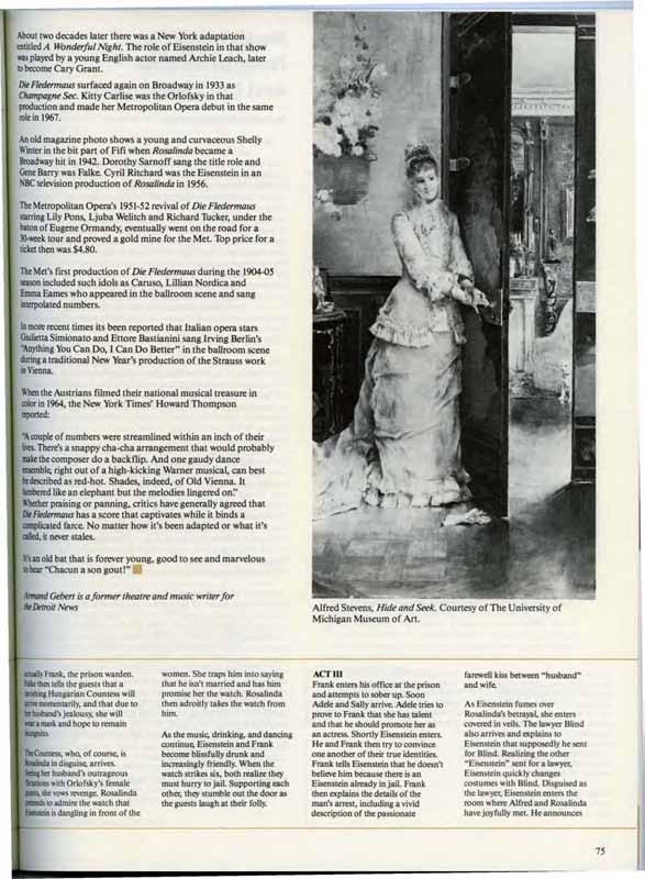 Consisting of scenesfromthe various operas that the Metropolitan Opera toured to Detroit, thesesceneswere performed byavery talented group of localsingers and introduced with personal narration, touring throughout southeast Michigan's schools and community centers