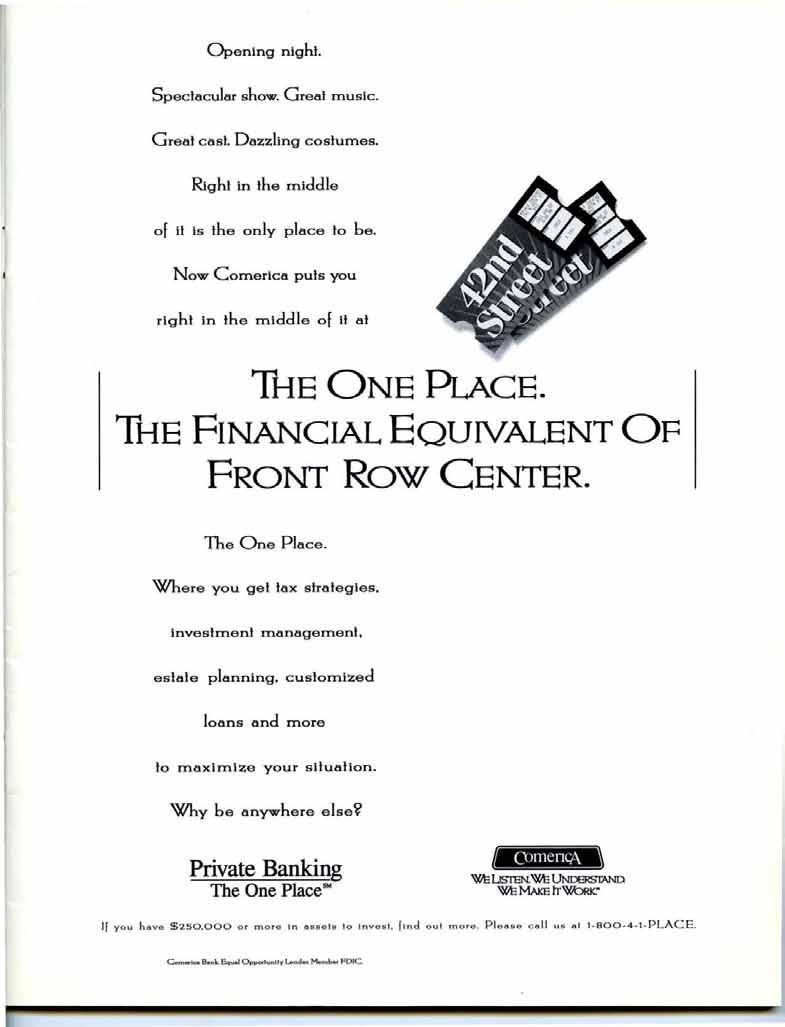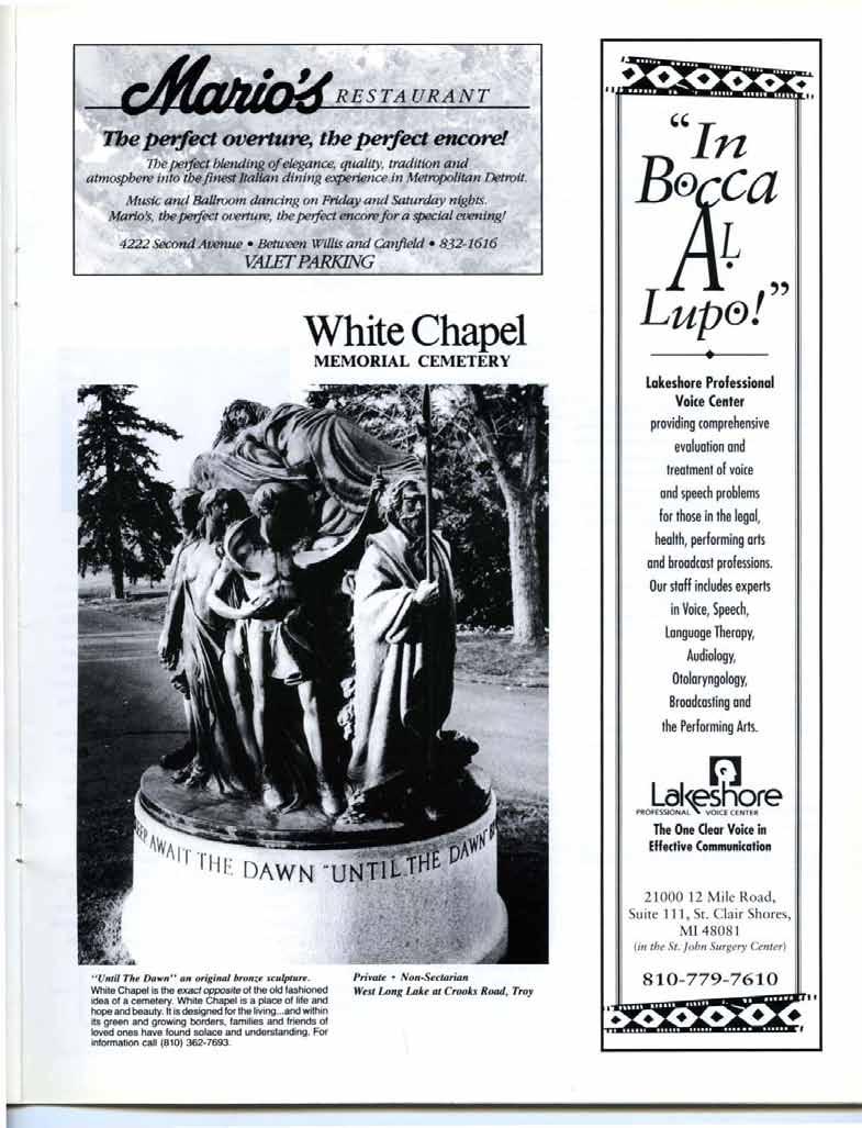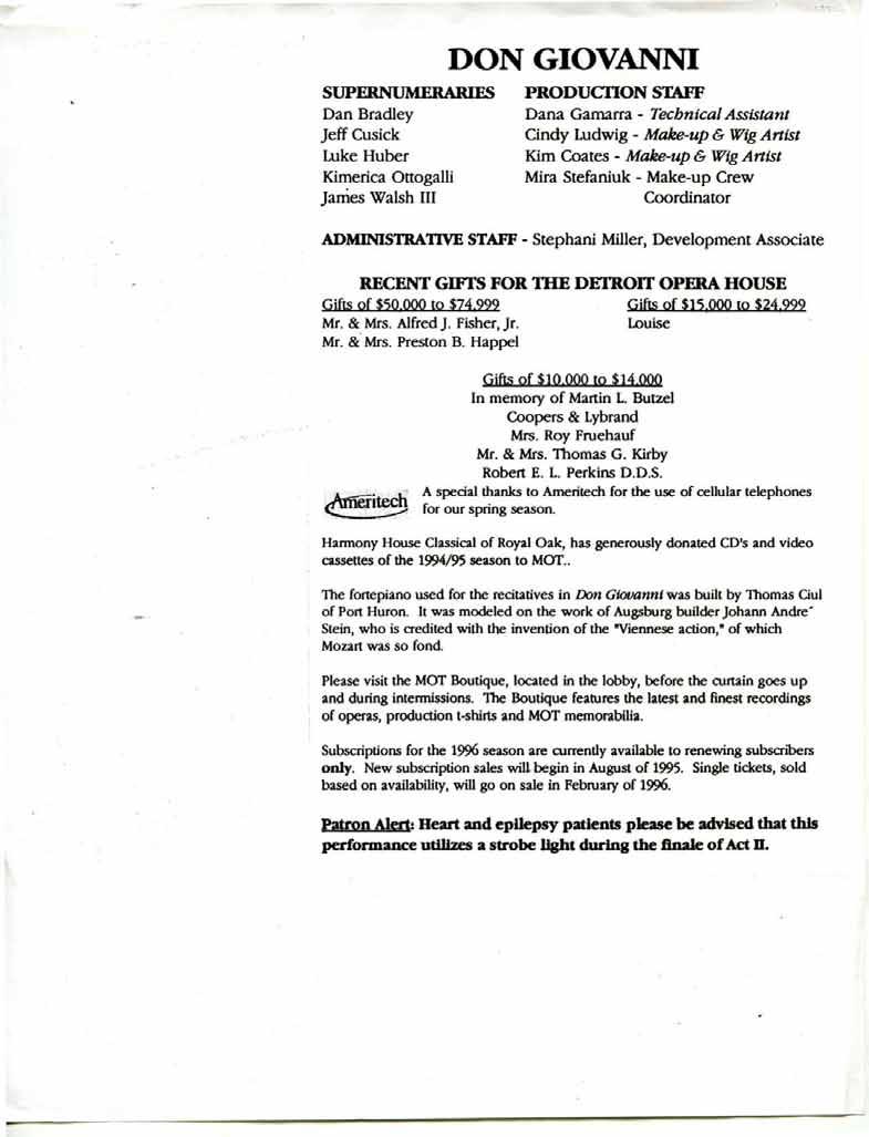 I am sure all of you share with me a sense of excitement and anticipation for MOT's new home , the Detroit Opera House The inaugural season in the opera house, the spring of 1996 , will be the fulfillment of this company's long-term goal to control its own performance facility, one which allows us to serve the community fully, and which is comparable in function, size and aesthetics with opera houses around the world Many corporations, foundations and individuals have generously demonstrated their support toward this goal, to them we are most grateful. For a complete listing of these contributors, and for an update on the Detroit Opera House, please refer to pages 12 and 13