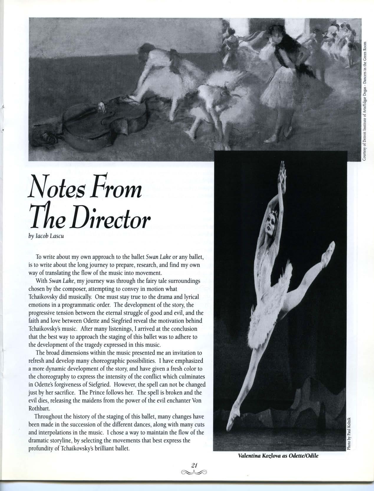 Our spring season opens with Mozart's timeless favorite, Don Giovanni. This dramatic comedy will be greatly enhanced by a stellar cast including Metropolitan Opera stars Jeffrey Wells as the Don, bass-baritone Philip Cokorinos, as his side-kick Leporello, and exciting soprano Martile Rowland as Donna Anna . This opulent Goya-inspired production was premiered by Michigan Opera Theatre in 1989 , deSigned by English theatre artist John Pascoe. Next, we present Tchaikovsky's beloved Swan Lake, arguably the most popular ballet of all time. Choreographed by Detroit's own lacob Lascu, Swan Lake features National Ballet of