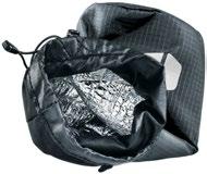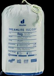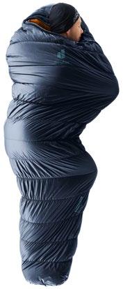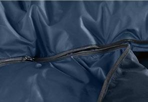 Les tissus des différentes parties sèches appelées « dryzones » sont spécialement élaborés pour atteindre un degré d’étanchéité élevé. Le sac de couchage reste ainsi agréablement sec.