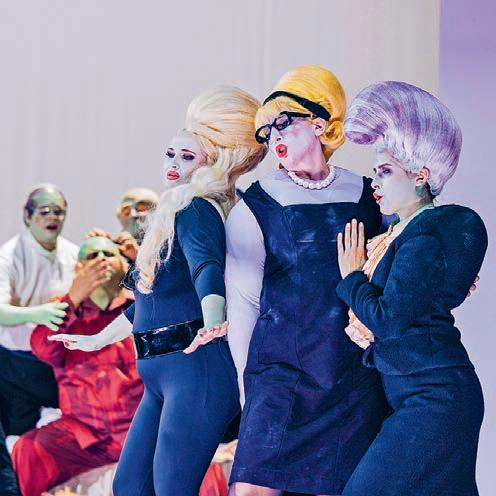 weiß ich, dass die Idee funktioniert. Szene für Szene notiere ich bei jeder Figur, bei jedem Einsatz, jedem Crescendo, was auf der Bühne passieren soll, schreibe es in Skizzenbücher, übertrage es in die Partitur, sie sieht am Ende aus wie eine bunte Landkarte: Pfeile, Markierungen, Zeichnungen für alle Bewegungen der Figuren. Es ist wie ein Tanz. Gerade in der Komödie ist Timing alles. Jede Geste, jeder Blick, jedes Schweigen ist Teil einer Choreografie. Und je dynamischer die Musik, umso genauer muss man arbeiten.