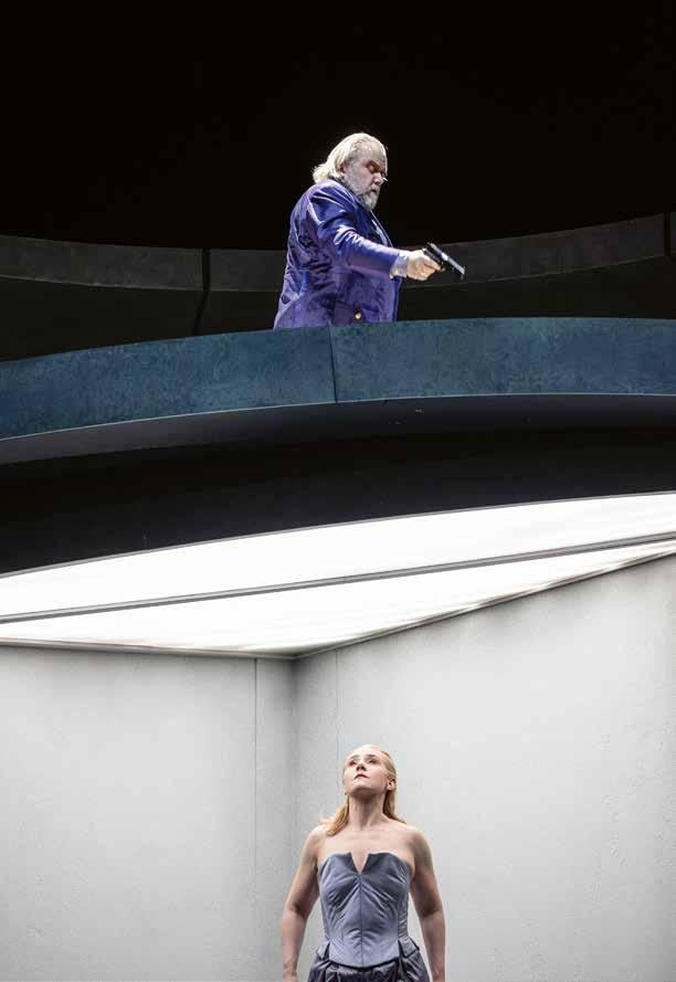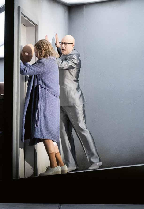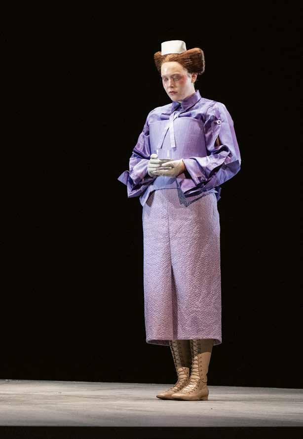Ich finde auch, dass diese beiden im Charakter so unterschiedlichen Stücke diese Leerstelle der Sprache sehr schön erzählen. Also das Nicht-Reden, NichtSingen auf eine geradezu physisch spürbare Weise vergegenwärtigen. Wenn Violanta da im Zentrum steht und einfach schweigt. Die Musik charakterisiert ihre Situation, bringt Dinge nahe, die man in diesem Einakter sonst nicht erzählen kann – das haben wir uns für Violanta herausgenommen. Sie steht über diese ganze Vorerzählung hinweg im Zentrum und schweigt, während die Tage und Nächte verfliegen, vergehen. Wir schauen wie in ein Brennglas mit einem Fast-ForwardKnopf, mit der Fernbedienung in der Hand.