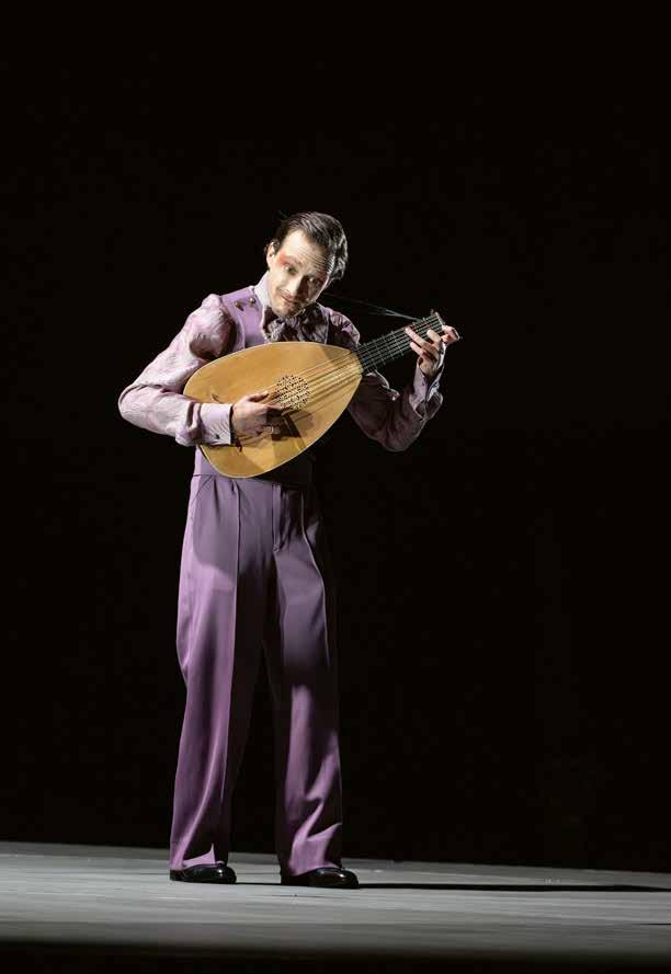 Der Dowland ist natürlich ein Verweis auf die Zeit, in der das Stück dem Libretto zufolge spielt – und im Vorspiel von VIOLANTA spielt eine Laute im Orchester mit. Die Laute ist also in der DNA von VIOLANTA enthalten. Mich hat auch interessiert, wie ein fragiles Instrument wie die Laute in einem großen Opernhaus wirkt – auch weil es akustisch so unverbraucht ist und einen eigenen szenischen Klangraum öffnet. Bergs Präludium im Anschluss setzt quasi subkutan aus der Tiefe an. Wenn der Lautenklang oben verhallt, schleicht sich das Orchester gewissermaßen von unten herein und stellt im Grunde alles in Frage. Alles, was musikalisch gerade war, wird noch mehr zerklüftet und als Unruhe geortet. Und da Bergs Musik so expressiv ist, kommt sie auch gut ohne Sprache aus. Die extreme expressive Dichte in der Knappheit ist ja das Phänomenale an diesen kurzen Stücken von Berg, ebenso wie später noch stärker in den Miniaturen Weberns. Von daher passt das, finde ich, ganz gut zusammen: ein kondensierter Dowland, ein hoch verdichteter Berg und dann im Grunde auch die kompakte Form bei Korngold.