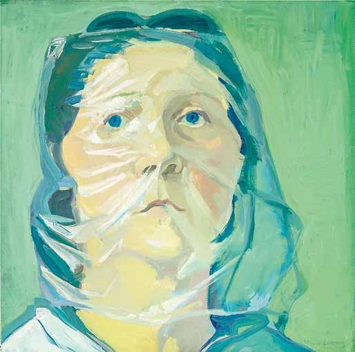 Maria Lassnig: „Selbstporträt unter Plastik“, 1972. Öl auf Leinwand, 55,5 × 56,6 cm.