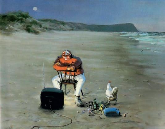 Bevor Michael J. Browne sein Studium an der Chelsea School of Art und der Manchester Metropolitan University absolvierte und mit allegorischen Darstellungen von Sportlegenden Bekanntheit erlangte, wuchs er in Moss Side, im Süden Manchesters auf, weniger als zwei Kilometer von Old Trafford entfernt. Umso nachvollziehbarer ist es, dass er die Frage nach der Kunst des Spiels mit einer Darstellung Cantonas beantwortet, jenem Akteur, der wie kein anderer für Manchesters Triumphe der 1990er-Jahre steht. Im Unterschied zu seinen Teammitgliedern ist er in der Komposition denn auch längst nicht mehr Teil der irdischen Sphäre. Nur einem weiteren United-Spieler ließ der Maler in der Folge eine ähnliche Ehre zuteilwerden: Für seine Darstellung George Bests griff er 2009 auf Raffaels Transfiguration zurück. FS