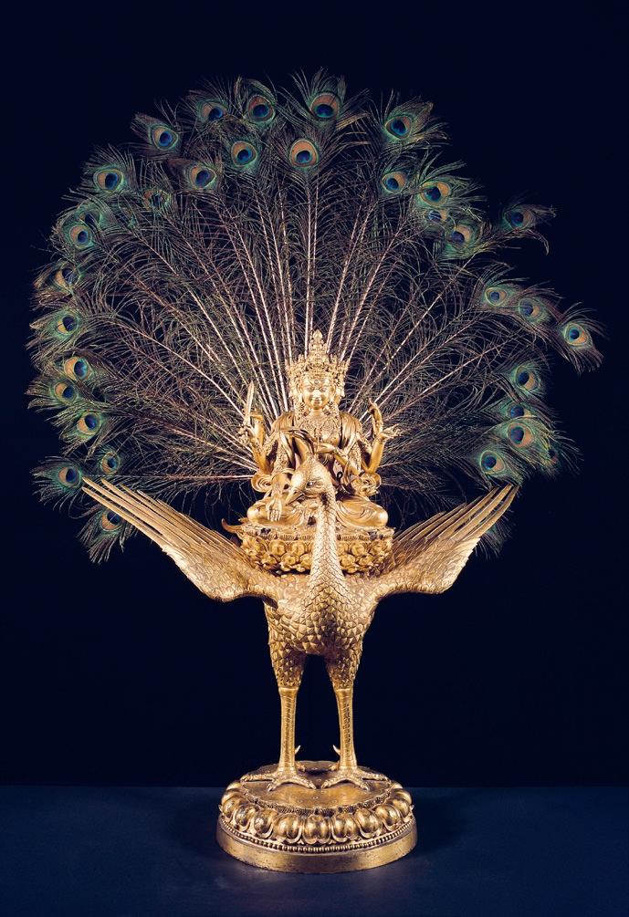 Die Skulptur aus Afrika, ein NKISI NKONDI , galt für die Gesellschaften entlang der Loangoküste in der heutigen Demokratischen Republik Kongo, der Republik Kongo und im heutigen Angola als sichtbare Manifestation der rechtsprechenden Kraft MANGAAKA und war zugleich eine konkrete Antwort auf die zunehmende Bedrohung durch europäische Kolonialmächte. Von Indien bis China, dem Herkunftsort des Werkes aus Asien, wird die MAHAMAYURI als Schutzgottheit gegen Bedrohungen durch Naturgewalten