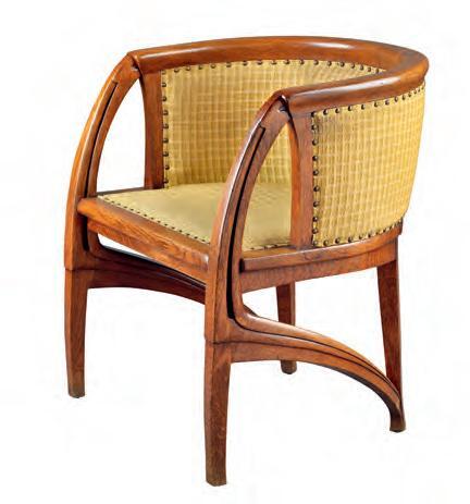vorplatz bietet ausreichend Distanz, um das imposante Portal des Gebäudes auf die Besucher wirken zu lassen. Van de Velde fügte den Vorbau im Jahr 1903 an die Ostfassade an, wobei er die rote Farbgebung und die helle Sandsteinfassung des bestehenden Backsteinbaus übernahm. Eine hohe Doppeltür aus massiver Eiche, die – ähnlich wie bei einem Tempel – nur von innen zu öffnen ist, zieht den Blick auf sich. Ihre Messinggriffe sind als vegetabile Linien gestaltet. Sie fließen in ein kantiges Spiralmotiv über, welches der Jugendstilkünstler auch für Bestecke oder Leuchten verwendete (Abb. 4). Im Bereich des Oberlichts ist die Doppeltür zu einem B ogen gerundet, der in den seitlichen Fenstern fortgeführt wird. Streifen aus rotem Sandstein flankieren die Portalseiten. Diese Zierelemente sind abstrahierte Pilaster und Kapitelle, deren Kannelierung sich im Holz der Tür und der Fenster fortsetzt.