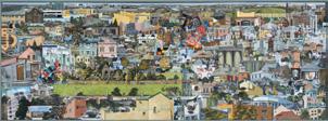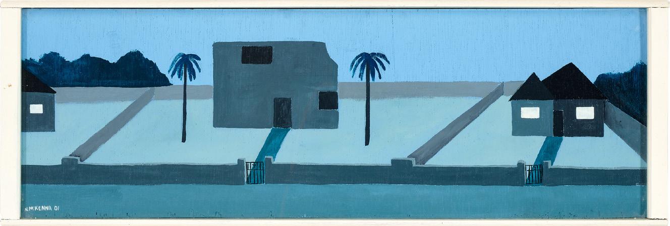 Blue series (2 homes), 2001, enamel on canvas board, 38.0 x 75.0 cm, private collection, Adelaide, illus. in Revealed: inside the private collections of South Australia, Samstag Museum, Adelaide, 2012, n.p.