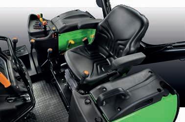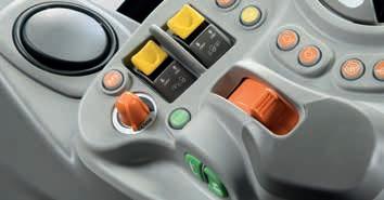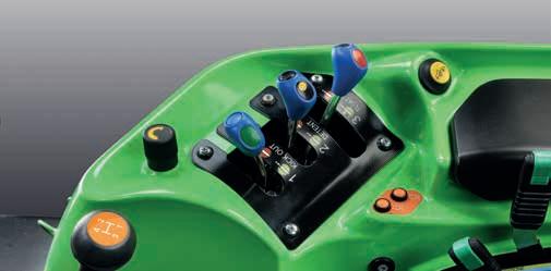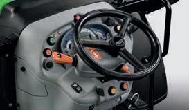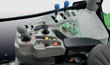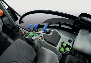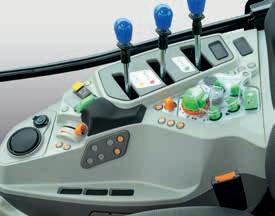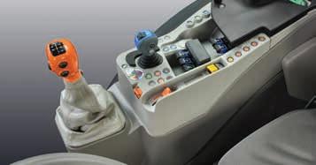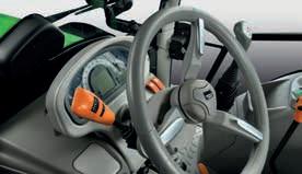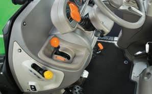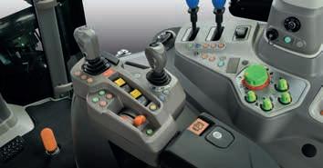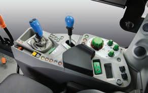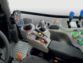 > Je nach Traktormodell Frontlader-Joystick mit Powershift-Tasten. Stop&Go, SDD-Schnelllenksystem und alle Bedienelemente für den Frontladerbetrieb sind voll integriert und leicht erreichbar.