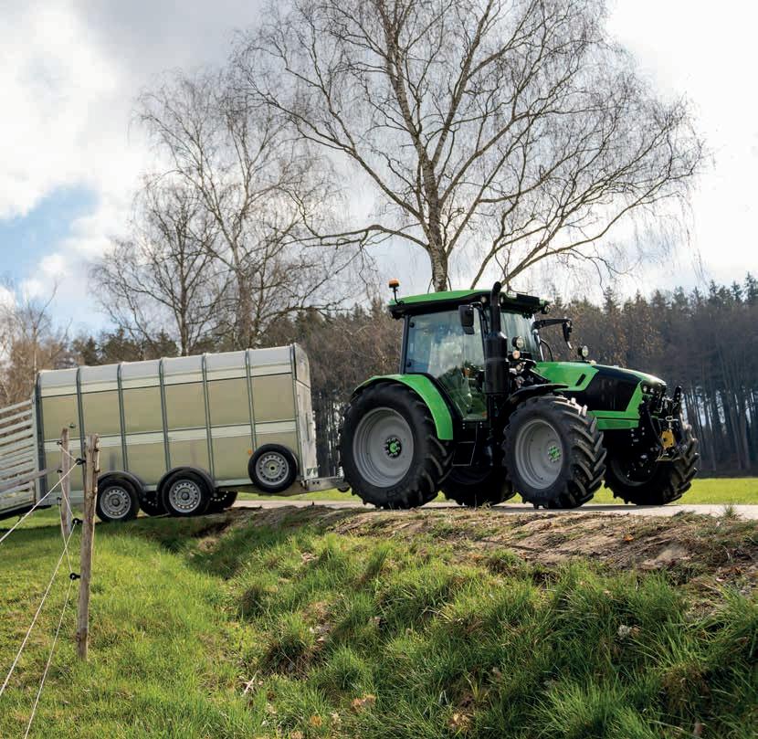 As muitas opções disponíveis incluem quase todo o tipo de sistema de travagem hidráulico e pneumático possível para reboques, o que torna esta gama de tratores ideal até mesmo para aplicações de transporte rodoviário pesado. Os modelos 5115 e 5125 também podem ser equipados com o travão de estacionamento hidráulico (HPB), que oferece até 250% da potência de travagem de um sistema convencional, para parar o trator em segurança mesmo em declives acentuados e com carga pesada. Esta solução inovadora também reduz as perdas de potência em comparação com um sistema convencional num impressionante 1,5 kW (aproximadamente 2 CV), maximizando a eficiência da máquina e permitindo poupar combustível. Outras opções importantes disponíveis para aumentar a versatilidade desta gama incluem uma seleção de tipos e tamanhos de pneus diferentes (jante fixa e jante ajustável), e muitas variantes de pneus aprovadas para aplicações em campo aberto, tarefas de mobilização secundária para culturas em linhas e utilização rodoviária. É também oferecida uma seleção de diferentes configurações de guarda-lamas dianteiros e traseiros, bem como um lastro monolítico e com pega para a dianteira e a traseira, e lastros de anel para as rodas traseiras. Por último, os modelos da Série 5 da DEUTZFAHR também podem ser encomendados com uma combinação específica cor de laranja de alta visibilidade para aplicações de manutenção rodoviária ou municipal.