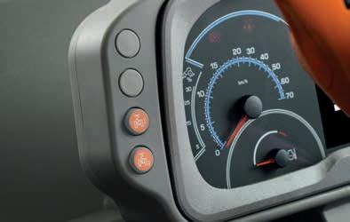 A dedicated pedal at the base of the steering column lets the operator adjust the rake and reach of the steering wheel quickly and easily. As the instrument cluster is mounted on the steering column, adjusting the steering wheel also adjusts the position of the cluster so that it is ideally placed and easily visible for drivers of any stature.