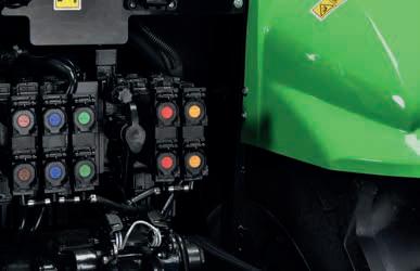 and auxiliary utilities. For the most demanding applications, the rear of the tractor can be fitted with up to 5 double acting high-flow distributors with electronic flow and time control and free return line. As well as this, all versions with Load Sensing pump can be equipped with Power Beyond connection. In the mid mounted-position, the most complete configuration includes 4 supplementary double acting high-flow distributors, with individual flow and time setting, 2 pressureless free return and 3 hydraulic ways duplicated from the rear can be installed, giving a total of 13 mid-mounted hydraulic connections.