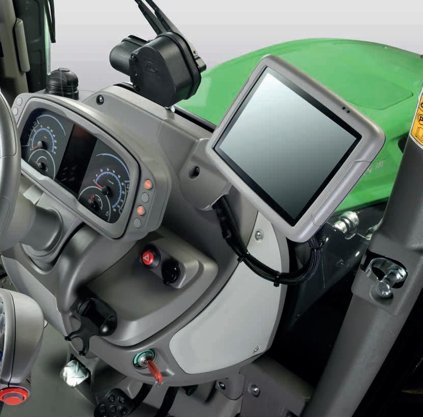 While the 8” iMonitor is available as an option, all models come as standard with the InfoCentrePro, with a high resolution 5” screen displaying all the information necessary concerning the status of the tractor clearly and letting the driver configure numerous functions. Arranged around the screen are a practical phone holder and the controls for a number of automated functions, such as the front suspension system, Auto 4WD, the SDD rapid steering system and the Hydraulic Parking Brake (HPB).