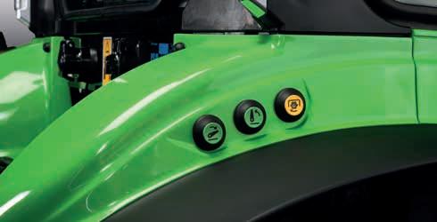 caudal, con ajuste individual del caudal y del tiempo instalados en el lado derecho del tractor. También se pueden instalar 2 vías hidráulicas de descarga libre sin presión y duplicarse hasta 3 vías hidráulicas de la parte trasera. Naturalmente, también están disponibles otras configuraciones hidráulicas más sencillas. El elevador trasero con control electrónico tiene una capacidad de elevación máxima de 3800 kg (3400 Kg en la versión con dirección a las 4 ruedas; 2600 kg en los modelos 5DS y 5DV TTV) y puede accionarse con los controles externos instalados de serie en los guardabarros traseros. La función de amortiguación activa para contrarrestar las