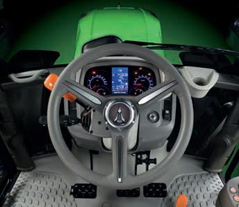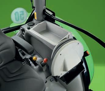 tarımsal ekipmanları kontrol etmeye yönelik diğer yardımcı cihaz, bir yolcu koltuğu, bir DAB+ radyo sistemi, güç prizleri (USB portları dahil) ve pratik bir akıllı telefon ve bardak tutucular. Tüm kabinler, yüksek düzeyde konfor için, operatöre ulaşan titreşimleri %40'a kadar azaltan yenilikçi bir Hidro Süspansiyon takozuna standart olarak sahiptir.